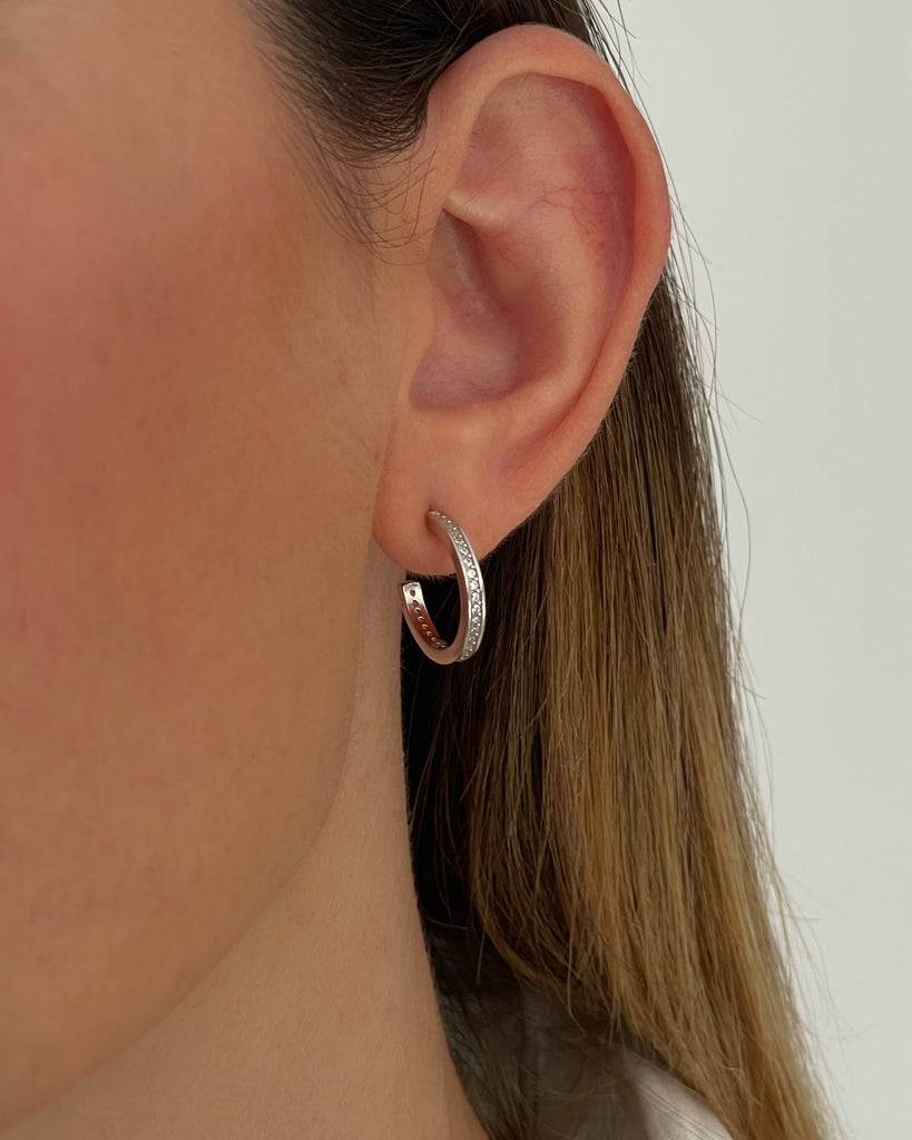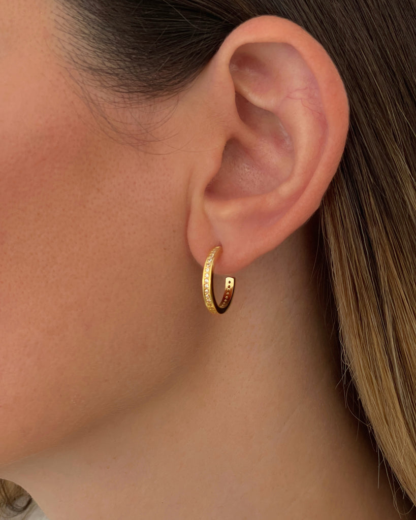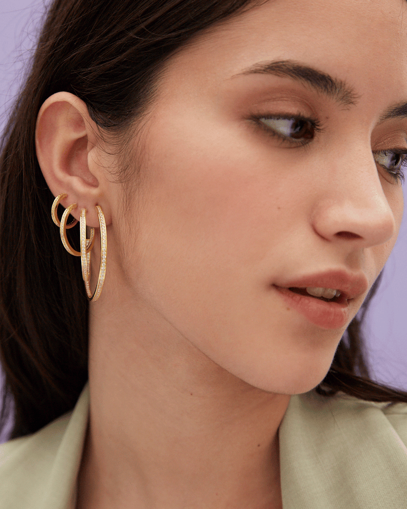 Para que la comodidad no riña con lo exquisito, hemos diseñado estos aros con circonitas blancas. Ligeros, cómodos y muy fáciles de poner, aportarán luz y atención a tu rostro. Delicadamente confeccionados en Plata de Ley 925 bañada en oro 18k y preciosas piedras de circonita incrustadas, te permitirán elevar el nivel de tu outfit solos o combinados con otras compañeras de tu joyero.