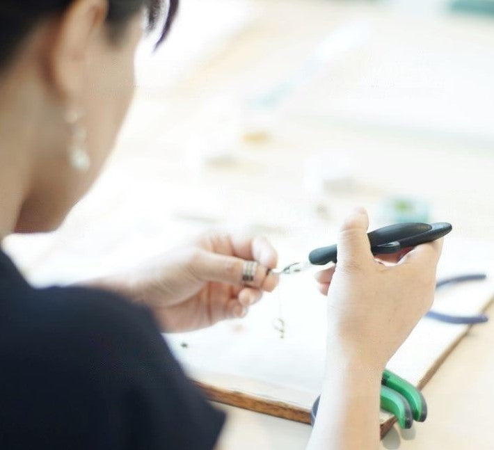 Una vez hemos clavado el boceto final, seleccionamos solo los materiales de calidad que creemos que representarán mejor la joya, desde plata de ley 925, oro de 18 quilates, latón, piedras semipreciosas o circonitas hasta cadenas de alta calidad fabricadas en Italia, elegimos únicamente los materiales que garantizan la máxima calidad para componer nuestras joyas.