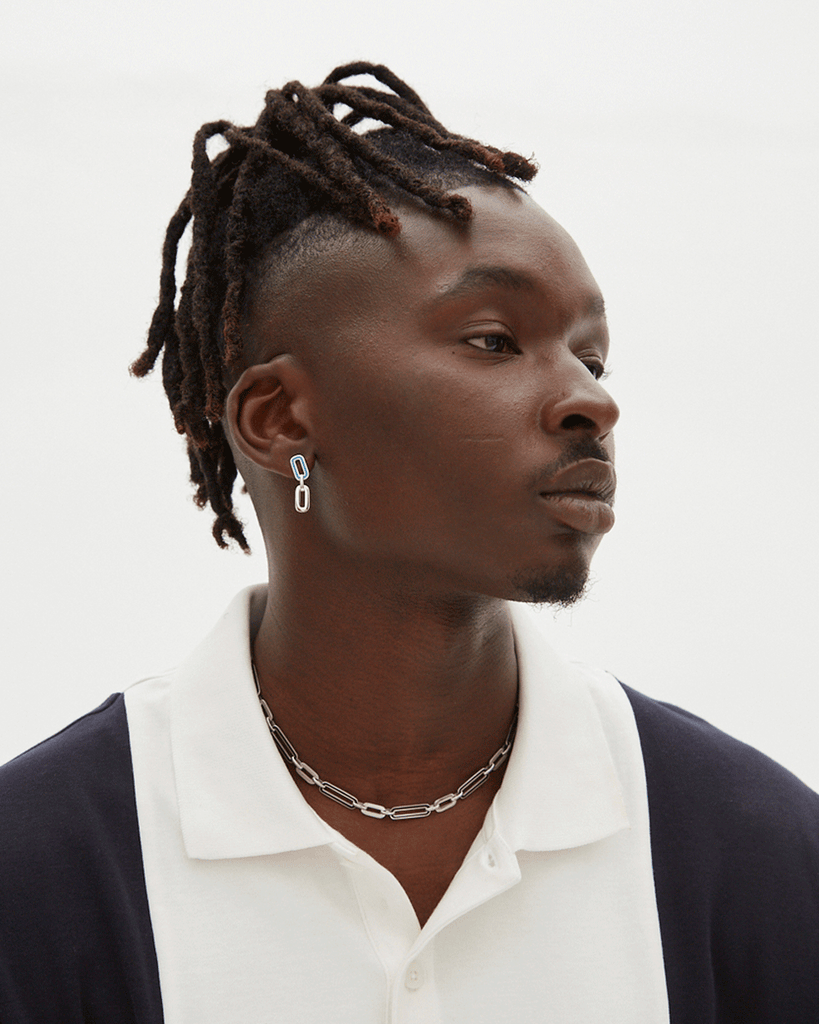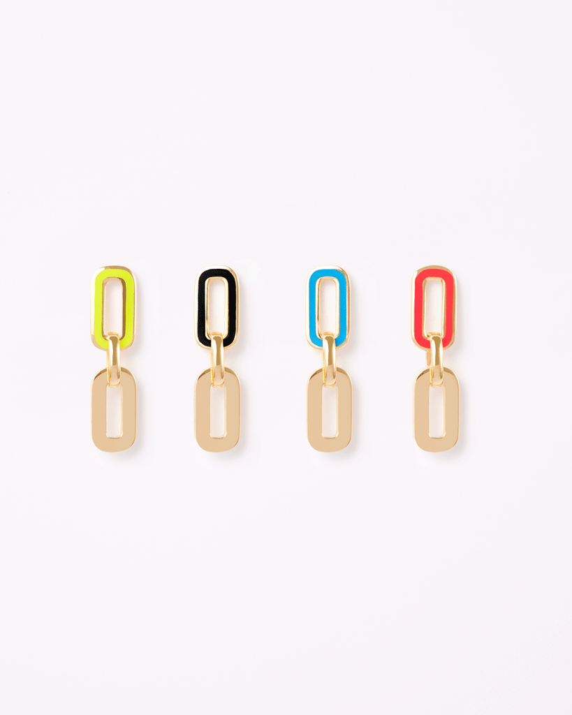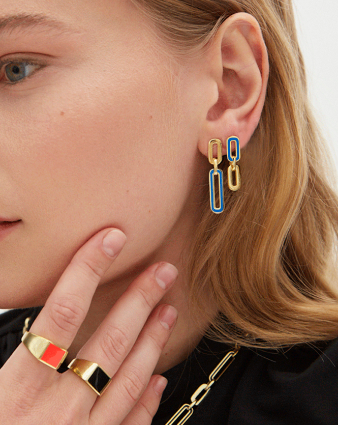 Exquisitely crafted from high-quality 925 sterling silver dipped in 18k gold and blue enamel, the double chain-link earrings feature an alternating double-link design to rub off double charm and glamour on your outfits.